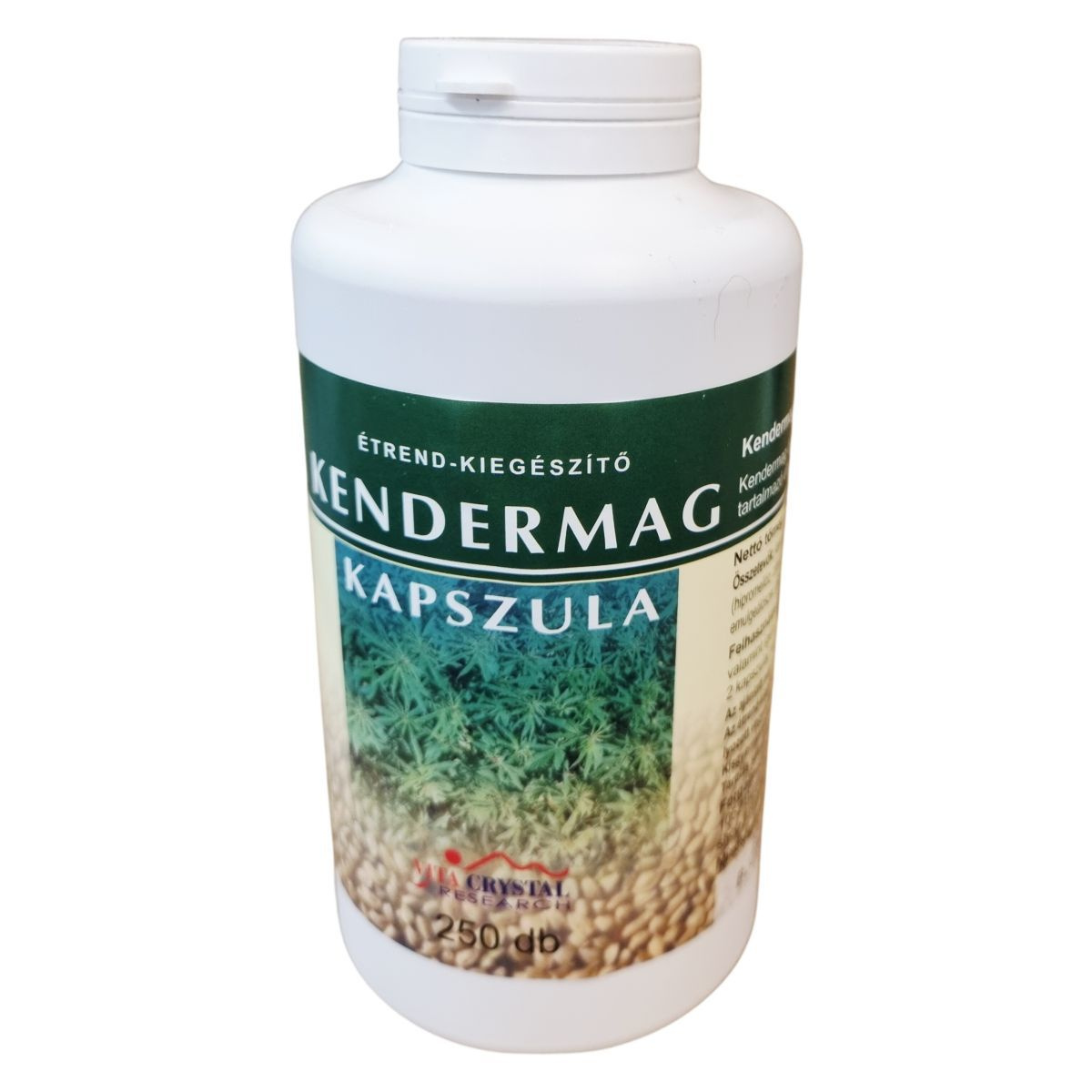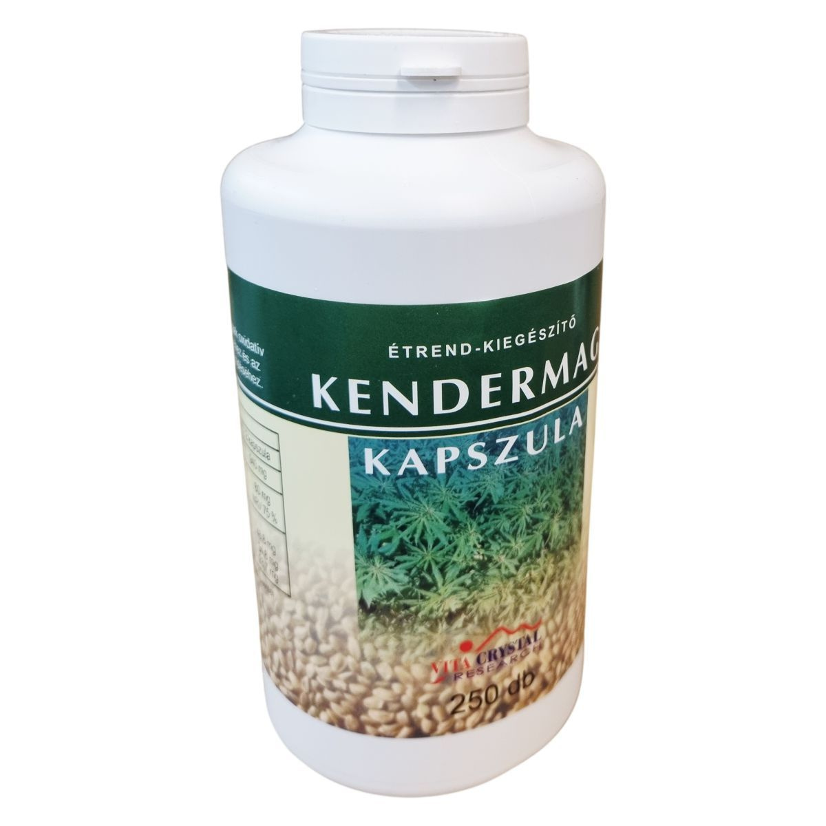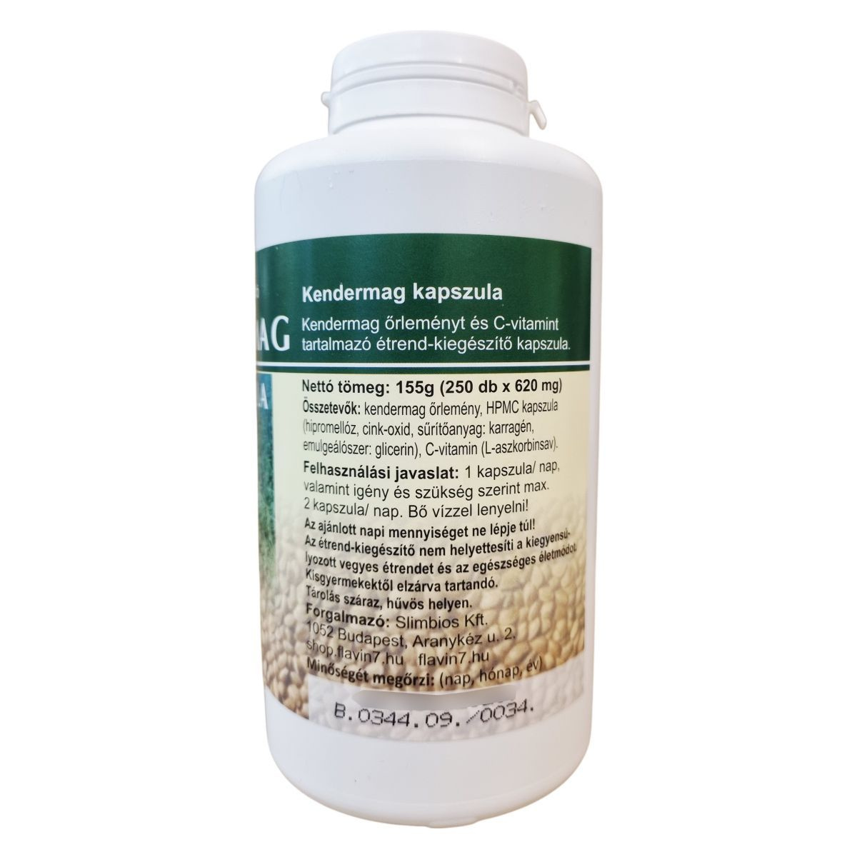 Kendermag őrleményt és C-vitamint tartalmazó étrend-kiegészítő kapszula. A C-vitamin hozzájárul a sejtek oxidatív stresszel szembeni védelméhez és az immunrendszer normál működéséhez. Nettó tömeg: 155 g (250 db x 620 mg).