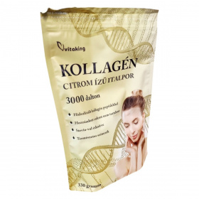 A Vitaking KOLLAGÉN citrom ízű italpor hidrolizált kollagén peptideket tartalmazhat, amelyek hozzájárulhatnak a bőr, a csontok és az ízületek normál állapotának fenntartásához. A termék steviával édesített, és hozzáadott cukrot nem tartalmaz.
