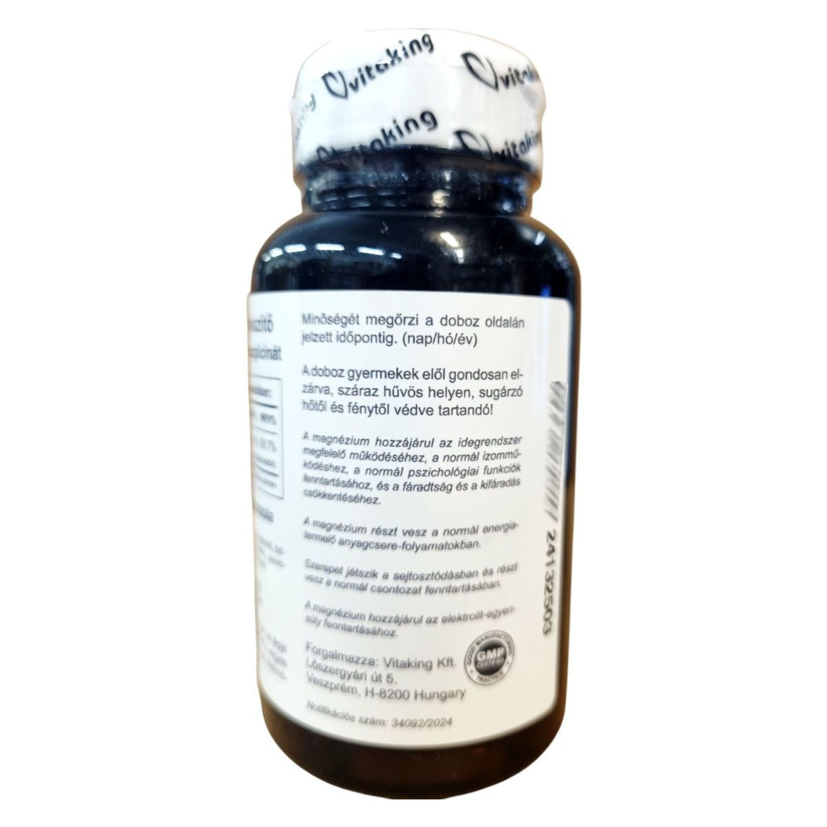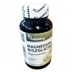 A Vitaking Magnézium Biszglicinát egy étrend-kiegészítő, amely 60 vegán kapszulát tartalmaz. A magnézium hozzájárulhat az idegrendszer megfelelő működéséhez, a normál izomműködéshez, a normál pszichológiai funkciók fenntartásához, és a fáradtság és a kifáradás csökkentéséhez. Emellett részt vehet a normál energiatermelő anyagcsere-folyamatokban, szerepet játszhat a sejtosztódásban és a normál csontozat fenntartásában, valamint hozzájárulhat az elektrolit-egyensúly fenntartásához. A termék minőségét megőrzi a doboz oldalán jelzett időpontig, és fontos, hogy gyermekek elől elzárva, száraz, hűvös helyen tároljuk.