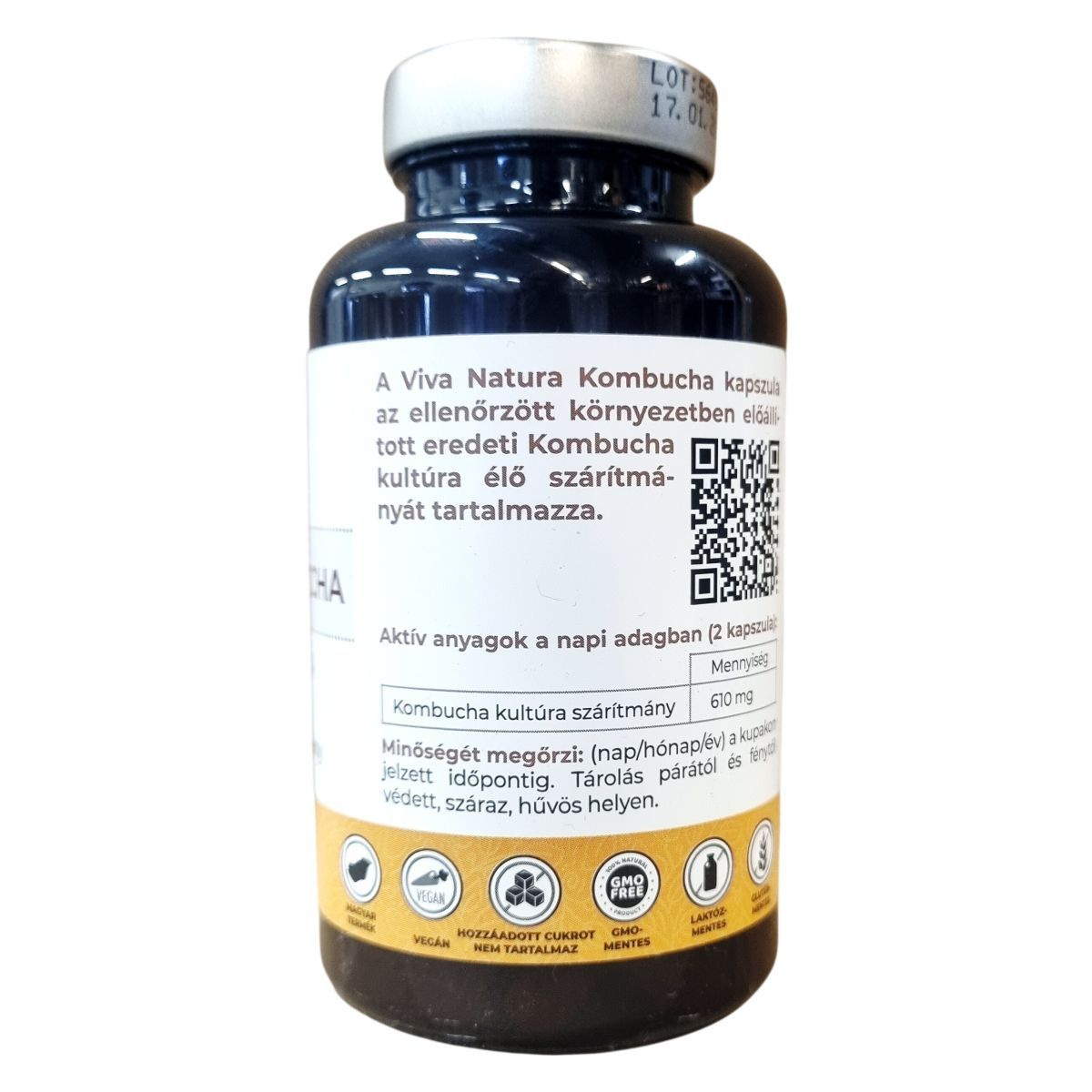 A Viva Natura Kombucha kapszula élő szárítmány formájában tartalmazza az eredeti, ellenőrzött környezetben előállított kombucha kultúrát. A termék magyarországi gyártású, nem tartalmaz hozzáadott cukrot, és vegán, GMO-mentes, laktózmentes minősítéssel rendelkezik, így széles körben alkalmas étrend-kiegészítésre. A kapszula összetevői között megtalálható a stabilizátor és a növényi alapú kapszulahéj, melyek megfelelnek a természetes alapanyagokat kedvelők igényeinek. A napi ajánlott adag két kapszula, amelyet főétkezéseket követően, megfelelő mennyiségű folyadékkal javasolt bevenni.