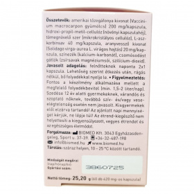Az étrend-kiegészítő kapszula amerikai tőzegáfonya és aranyvessző kivonatokat, valamint C-vitamint tartalmaz, melyek hozzájárulhatnak a húgyutak egészségének fenntartásához és az immunrendszer normál működéséhez.