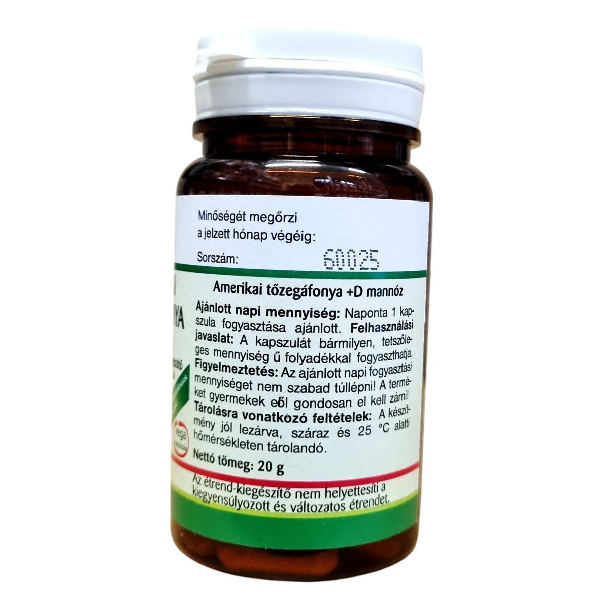 Az amerikai tőzegáfonya és D-mannóz kombinációját tartalmazó étrend-kiegészítő kapszula hozzájárulhat a húgyúti rendszer egészségének támogatásához. A termék 10% proantocianidinra standardizált, és vegetáriánusok számára is alkalmas növényi kapszulában kapható. Az étrend-kiegészítő nem helyettesíti a kiegyensúlyozott és változatos étrendet. A termék származási országa az EU, és a NutriLAB H Kft. forgalmazza.