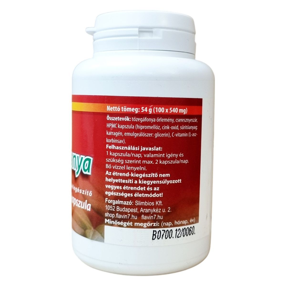 A termék nettó tömege 54 g (100 x 540 mg). A kapszula egy étrend-kiegészítő, amely amerikai tőzegáfonya és cseresznyeszár őrleményt, valamint C-vitamint tartalmaz. A kapszula HPMC alapú, azaz vegán kapszula. Felhasználása során az étrend-kiegészítő nem helyettesíti a kiegyensúlyozott, vegyes étrendet és az egészséges életmódot. A termék forgalmazója a Slimbios Kft., amely 1052 Budapest, Aranykéz u. 2. címen található. A termék az immunrendszer normál működésének támogatása mellett alkalmazható, azonban a használat során fontos betartani a javasolt adagolást, és kisgyermekektől elzárva tartani.