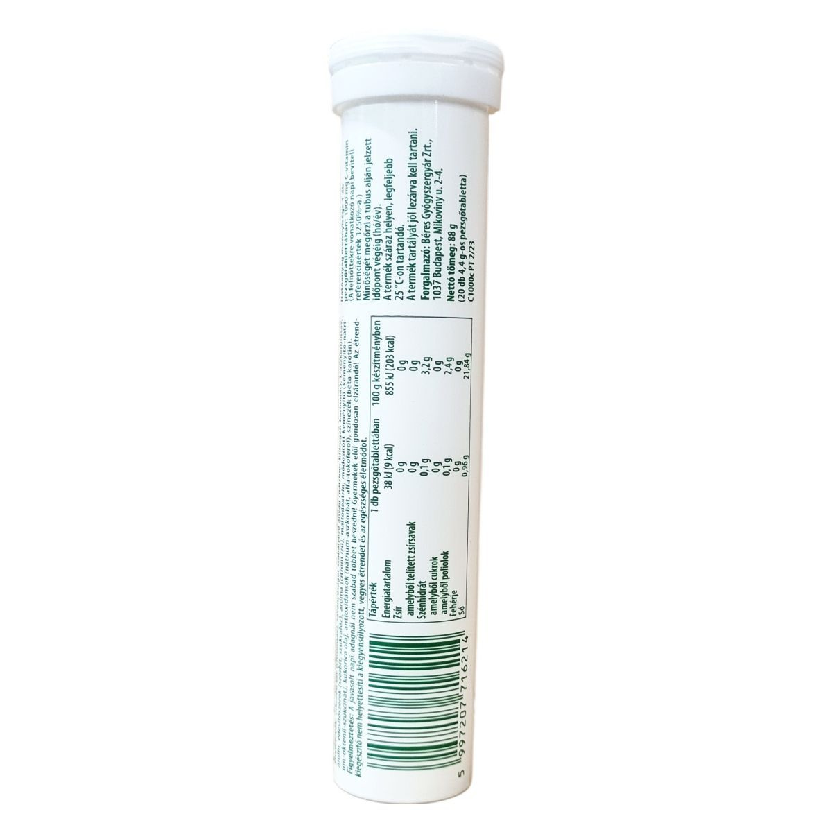 A Béres C-vitamin pezsgőtabletta édesítőszerekkel készül, citromízű és cukormentes. Egy tabletta 1000 mg C-vitamint tartalmaz, amely a felnőttekre vonatkozó napi beviteli referenciaérték 1250%-a. A termék minőségét a tubus alján jelzett időpontig megőrzi.