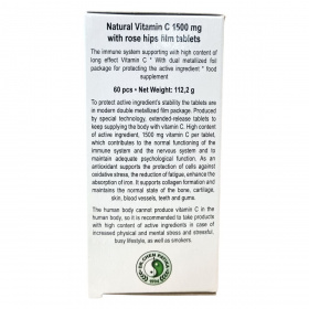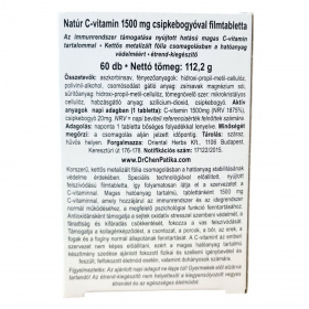 A Natúr C-vitamin 1500 mg csipkebogyóval filmtabletta egy speciális technológiával előállított, nyújtott felszívódású készítmény, amely folyamatosan elláthatja a szervezetet C-vitaminnal. A kettős metalizált fólia csomagolás védi a hatóanyag stabilitását és minőségét. A tablettánként 1500 mg C-vitamin hozzájárulhat az immunrendszer és az idegrendszer normál működéséhez, valamint a megfelelő pszichológiai funkciók fenntartásához. Antioxidáns hatásánál fogva támogathatja a sejtek védelmét az oxidatív stresszel szemben, segítheti a fáradtság és kifáradás csökkentését, illetve fokozhatja a vas felszívódását. Továbbá hozzájárulhat a kollagénképződéshez és a csontok, porcok, bőr, erek, fogak, valamint a fogíny normál állapotának fenntartásához. A szervezet nem képes előállítani a C-vitamint, ezért ajánlott a készítmény alkalmazása fizikai és szellemi megterhelés, feszült, felfokozott életmód, valamint dohányzás esetén.