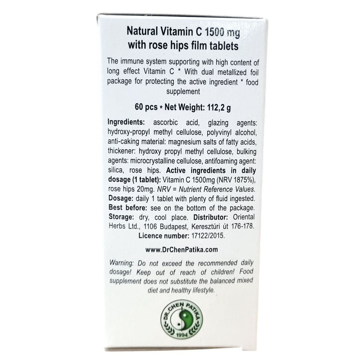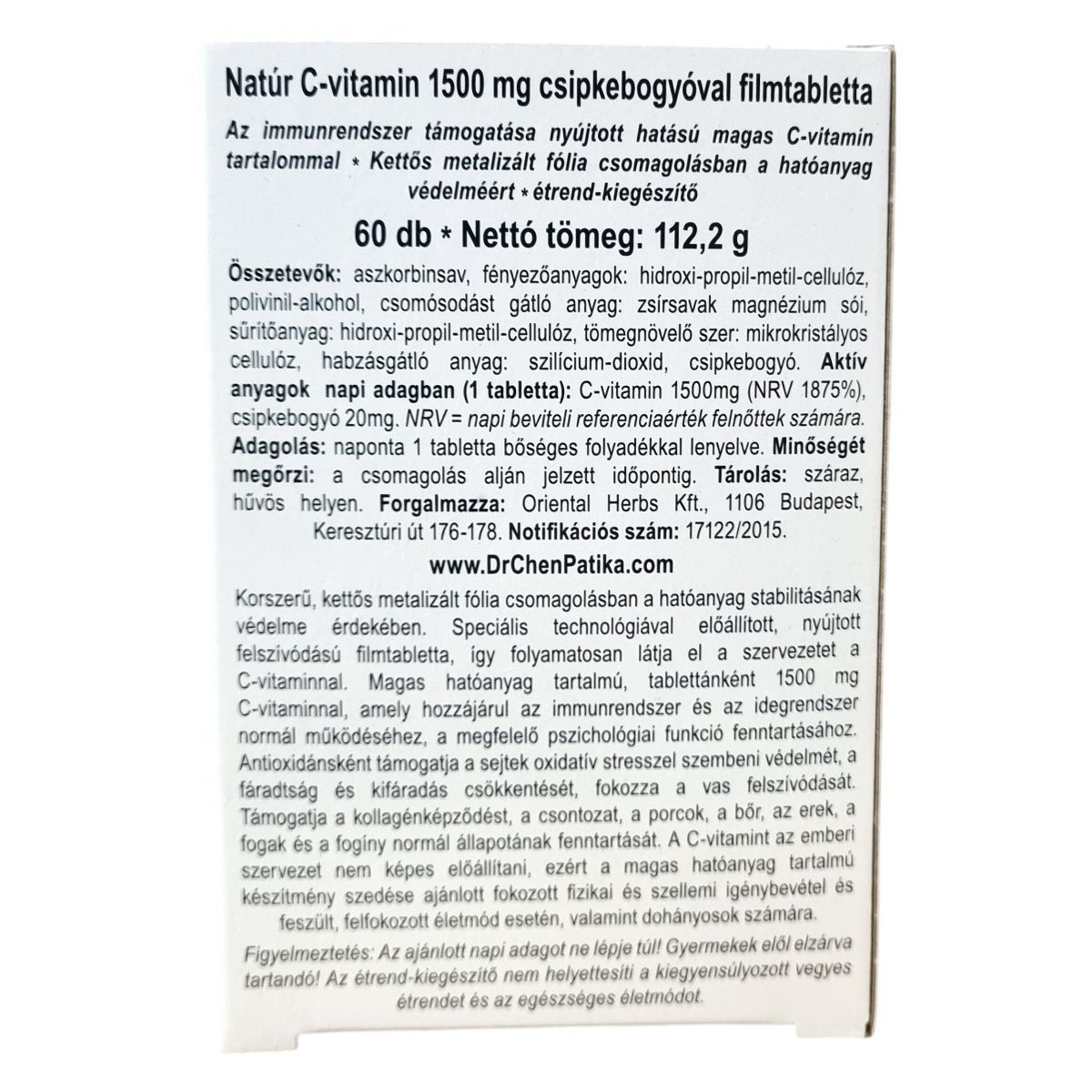 Dr. Chen natúr C-vitamin 1500mg csipkebogyóval filmtabletta 60db leírása