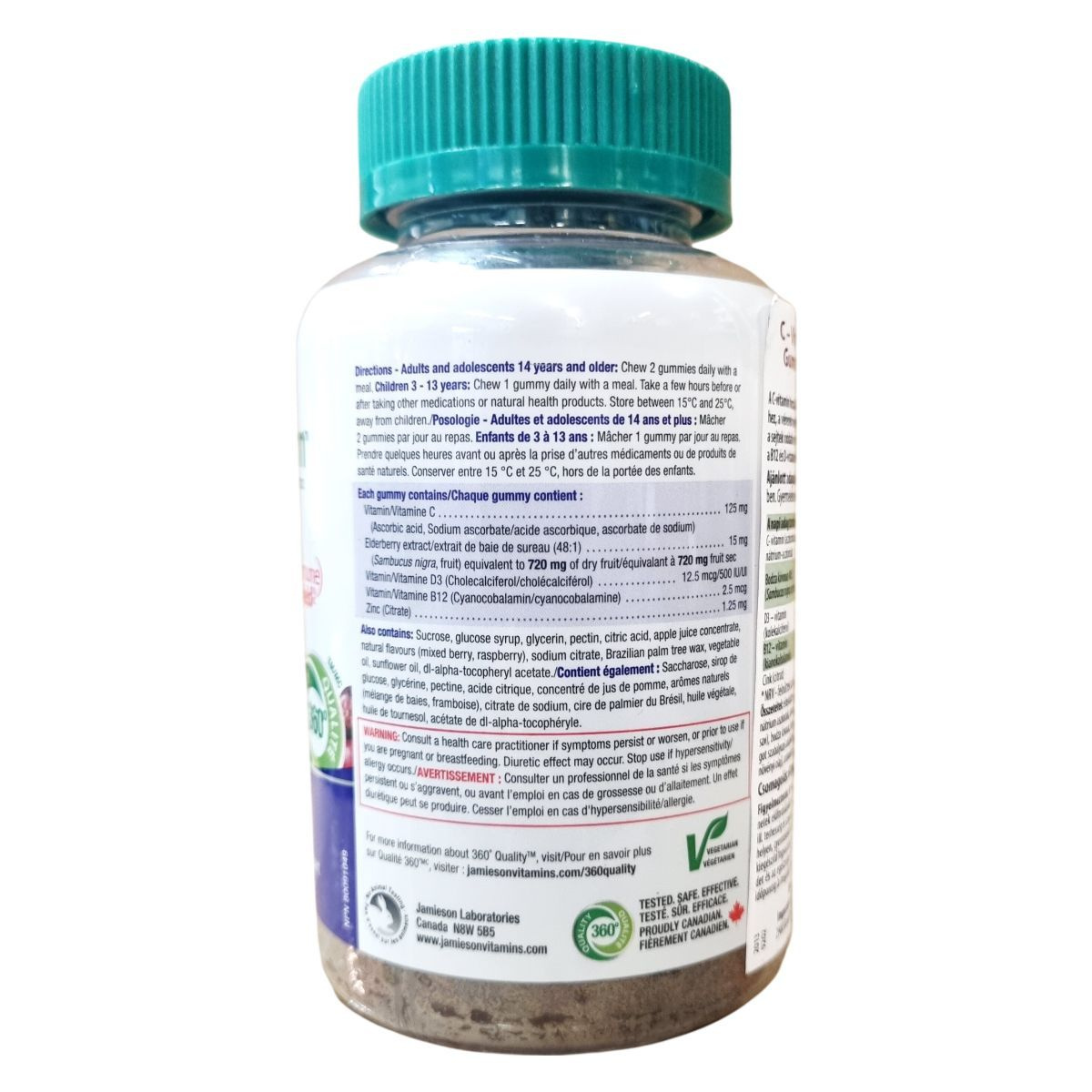 A Jamieson C + immune shield™MC gumicukor természetes bodza ízzel készült, mely hozzájárulhat a megfázás tüneteinek enyhítéséhez és a mindennapi immunrendszeri támogatáshoz. Hatóanyagai között megtalálható a C-vitamin, amely segítheti az immun- és idegrendszer normál működését, támogathatja a vérerek megfelelő működését és védelmet nyújthat a sejtek oxidatív stresszel szemben. A termékben szintén jelen van a bodza kivonat, a D3-vitamin, a B12-vitamin és a cink, melyek együttesen hozzájárulhatnak az immunrendszer megfelelő működéséhez. Minden egyes gumicukor precízen adagolt hatóanyagokat tartalmaz, a fogyasztása kényelmes és ízletes alternatívát kínál. A termék vegetáriánus összetevőket tartalmaz, mesterséges színezék, aroma vagy tartósítószer nélkül készül, és nem tartalmaz glutént, laktózt, valamint gelatinmentes. Használata előtt figyelmet kell fordítani az esetleges allergiás reakciókra, valamint a terhesség és szoptatás időszakára. A csomagolás 60 gumicukrot tartalmaz, amelyeket étkezés közben ajánlott elfogyasztani, a hatóanyagok optimális felszívódása érdekében.