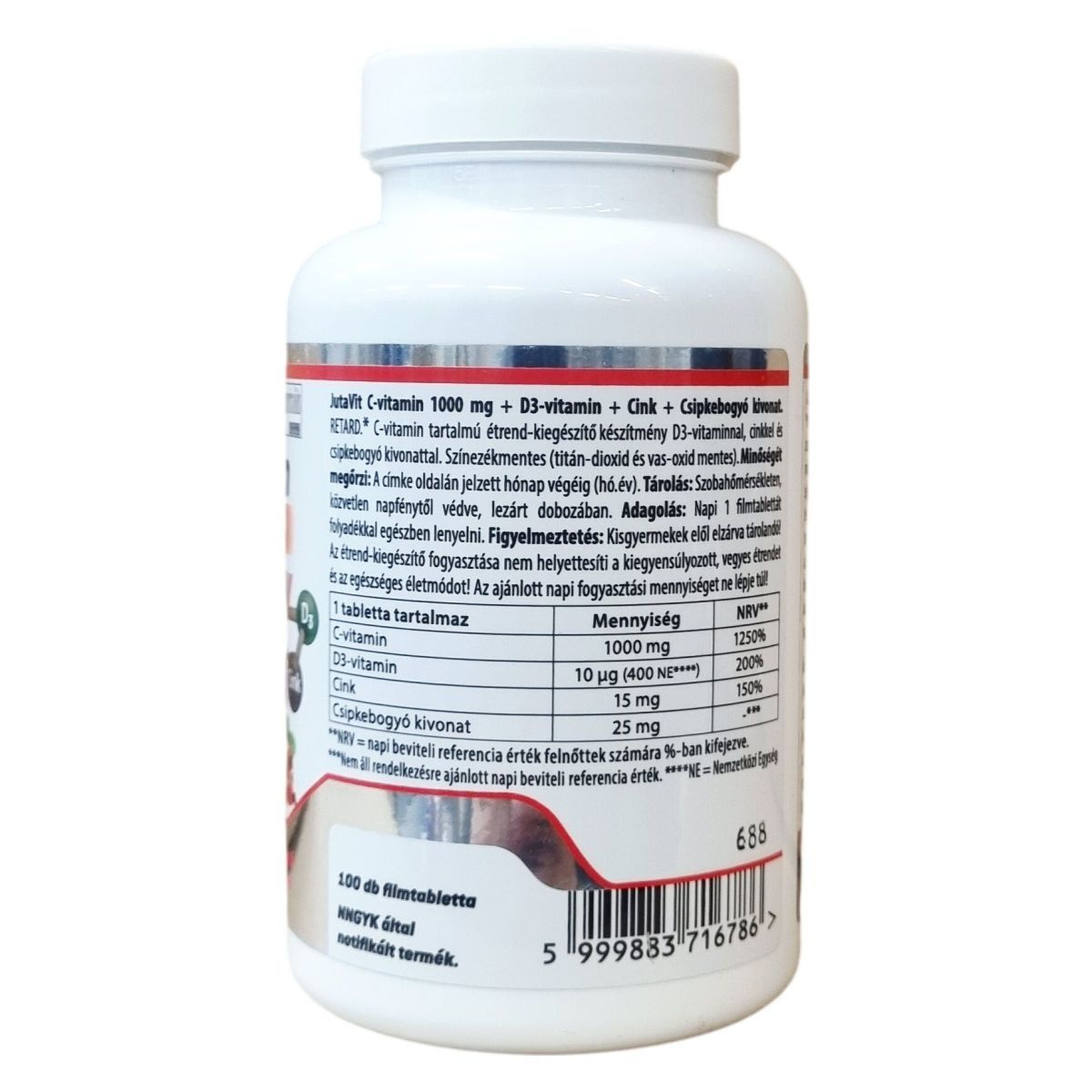 JutaVit C-vitamin 1000mg+csipkebogyó+D3+cink Retard filmtabletta 100db leírása