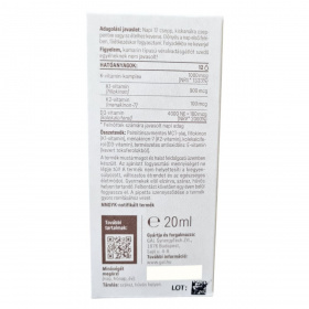 Az ajánlott fogyasztási mennyiséget ne lépje túl! A termék nem helyettesíti a kiegyensúlyozott, változatos étrendet és az egészséges életmódot. Gyermekek elől elzárva, száraz, hűvös helyen tartandó. Felbontás után egy éven belül fogyassza el. A pipetta szennyeződése a termék gyors romlásához vezethet.