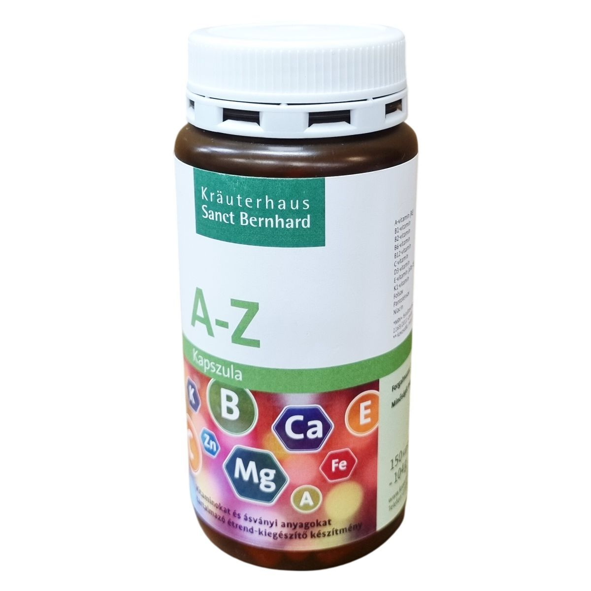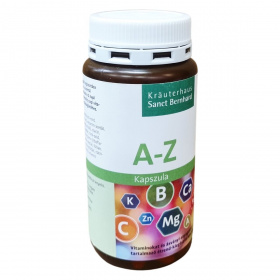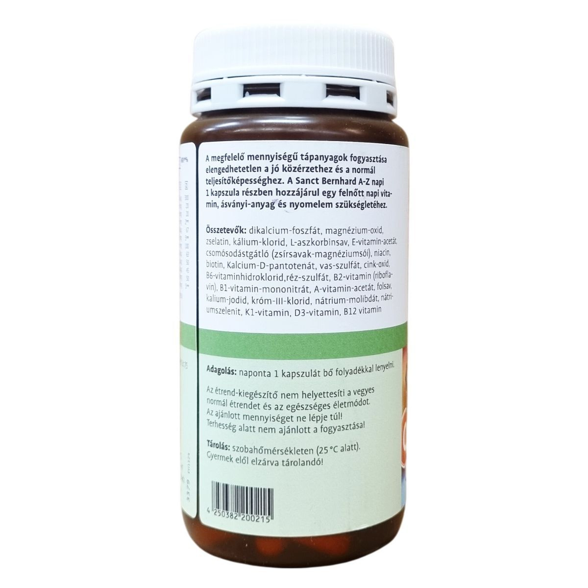 Napi egy szem Sanct Bernhard A-Z multivitamin kapszula tartalmazza mindazokat a vitaminokat, ásványi anyagokat és nyomelemeket, melyek egy felnőtt szervezetéhez szükségesek.