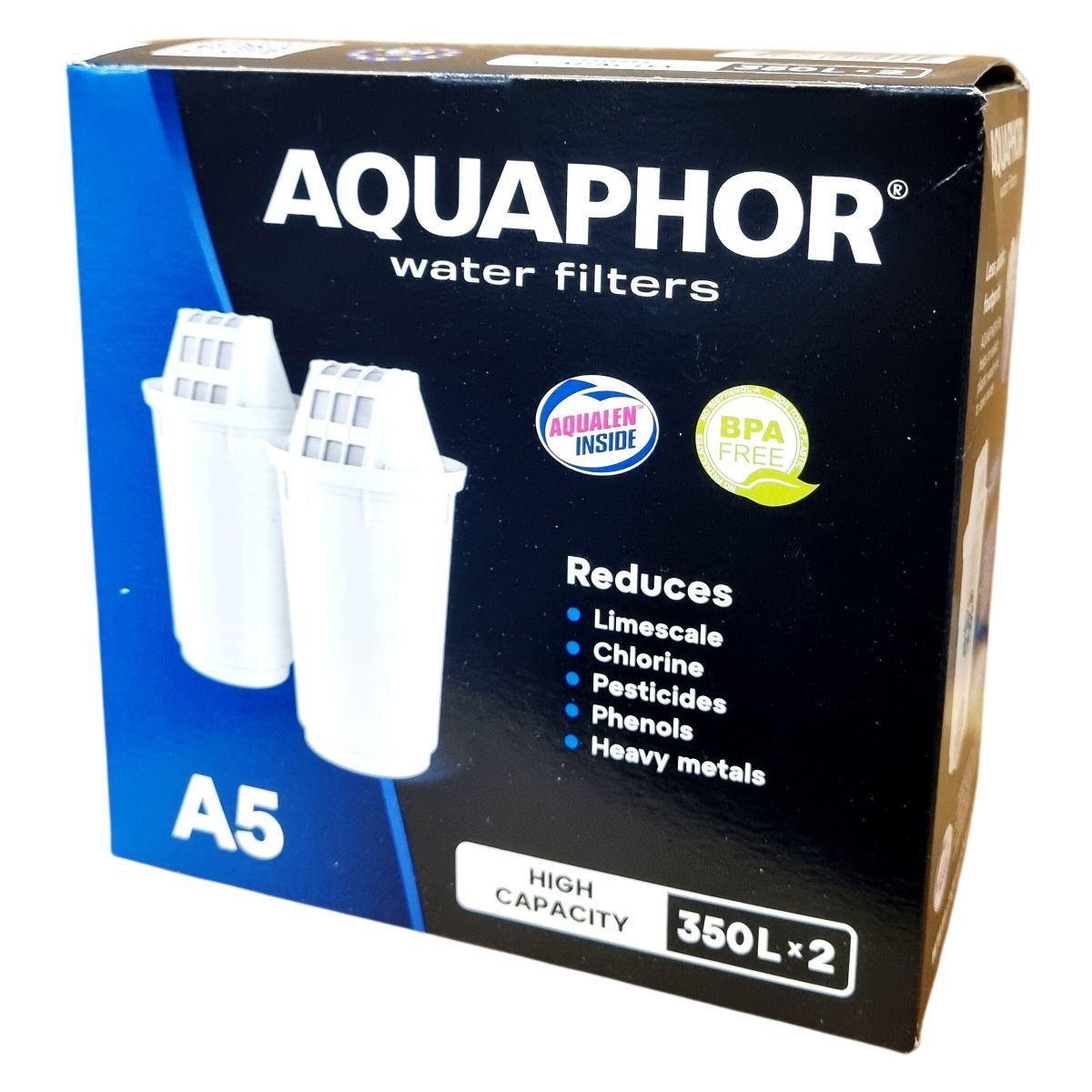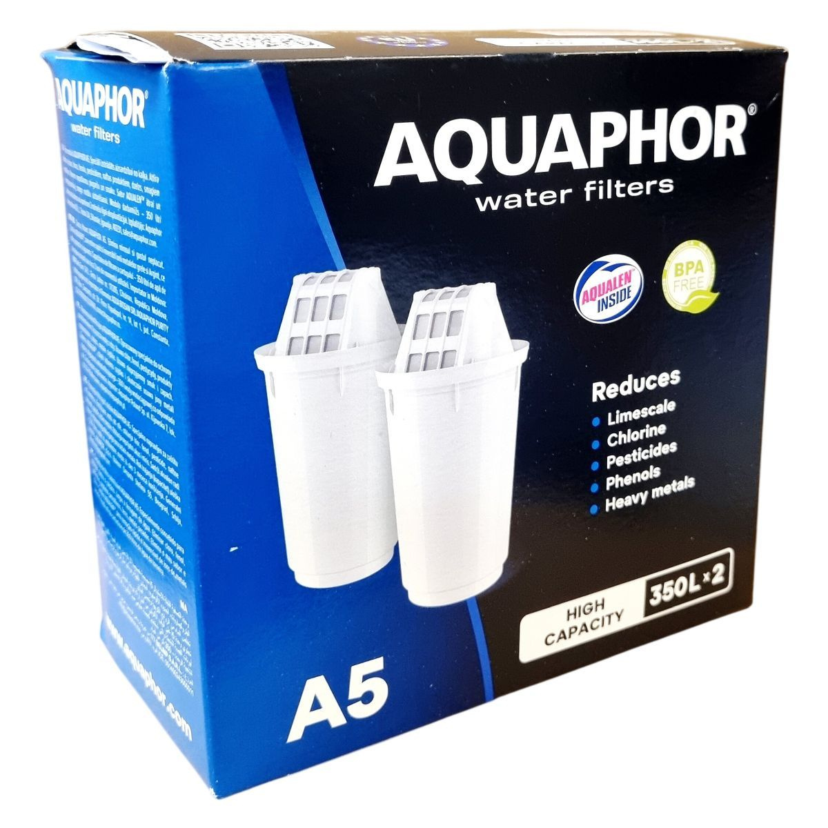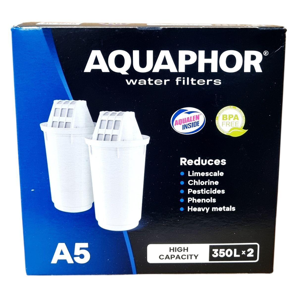 Az AQUAPHOR A5 szűrőbetét egy magas kapacitású, fejlett technológiát alkalmazó vízszűrő, amely segít csökkenteni a klór, peszticidek, fenolok, nehézfémek és egyéb káros anyagok jelenlétét a csapvízben. A szűrő előszűrő rétege megszűri az ülepedő anyagokat, mint például a homok és rozsda, míg az egyedi AQUALEN™ mikroszálas réteg jelentősen megnöveli a szűrés hatékonyságát az ioncserélő gyanta és aktív szén kombinációjával. Az AQUALEN™ különösen nagy, 33-szoros szorbens felülettel rendelkezik, amely visszafordíthatatlanul köti meg a nehézfém ionokat, így a szűrő hatékony bármely vízkeménység esetén. A szűrő hosszú élettartamú, akár 350 liter megtisztított vizet vagy mintegy három hónap használatot biztosít, ezzel hozzájárulva a műanyag hulladék csökkentéséhez és költségmegtakarításhoz is.