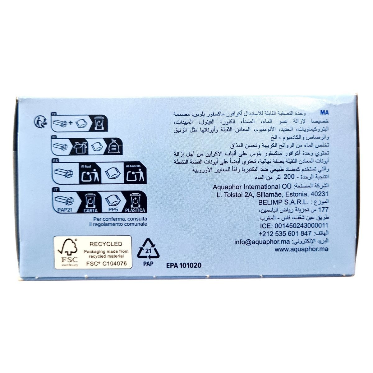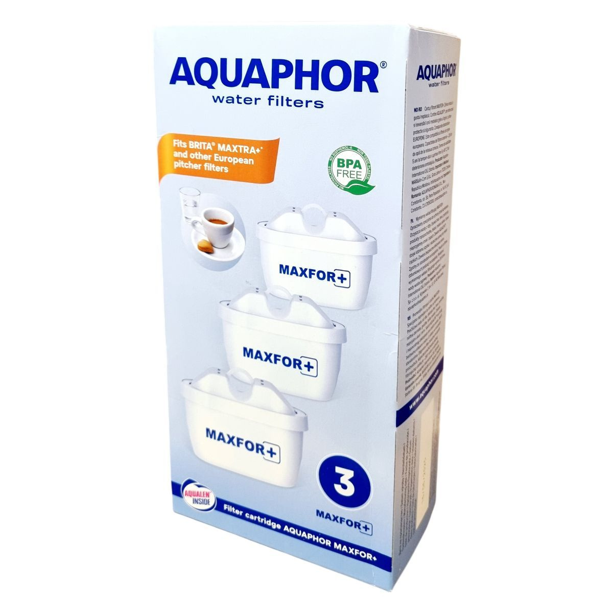 A MAXFOR+ csereszűrő betét hatékonyan védi a vízszűrő kancsókat a vízkő lerakódásától. Képes eltávolítani a vasat, nehézfémeket (például ólom, kadmium), klórt, fenolt, peszticideket és egyéb káros vegyületeket, miközben megszünteti a víz rossz ízét és szagát. Az AQUALEN™ technológia révén gyors és visszafordíthatatlan ionmegkötést biztosít, ami a nehézfémek eltávolításának hatékonyságát növeli. Az ezüstionokat tartalmazó szűrő felület antibakteriális hatású, így megakadályozza a káros baktériumok növekedését. A szűrő betétek megfelelnek az európai szabványoknak, és kompatibilisek számos európai gyártású vízszűrő kancsóval. Egy betét átlagosan 200 liter vezetékes víz megtisztítására alkalmas. A termék FSC tanúsítvánnyal rendelkező újrahasznosított anyagokból készült csomagolásban érkezik, elősegítve ezzel a környezetvédelemhez való hozzájárulást és a műanyag hulladék csökkentését.