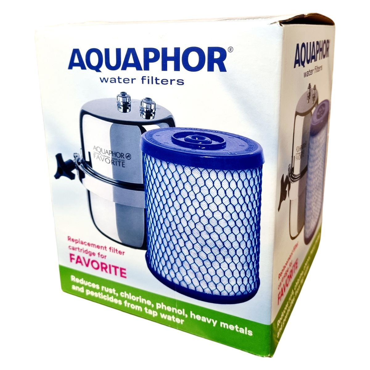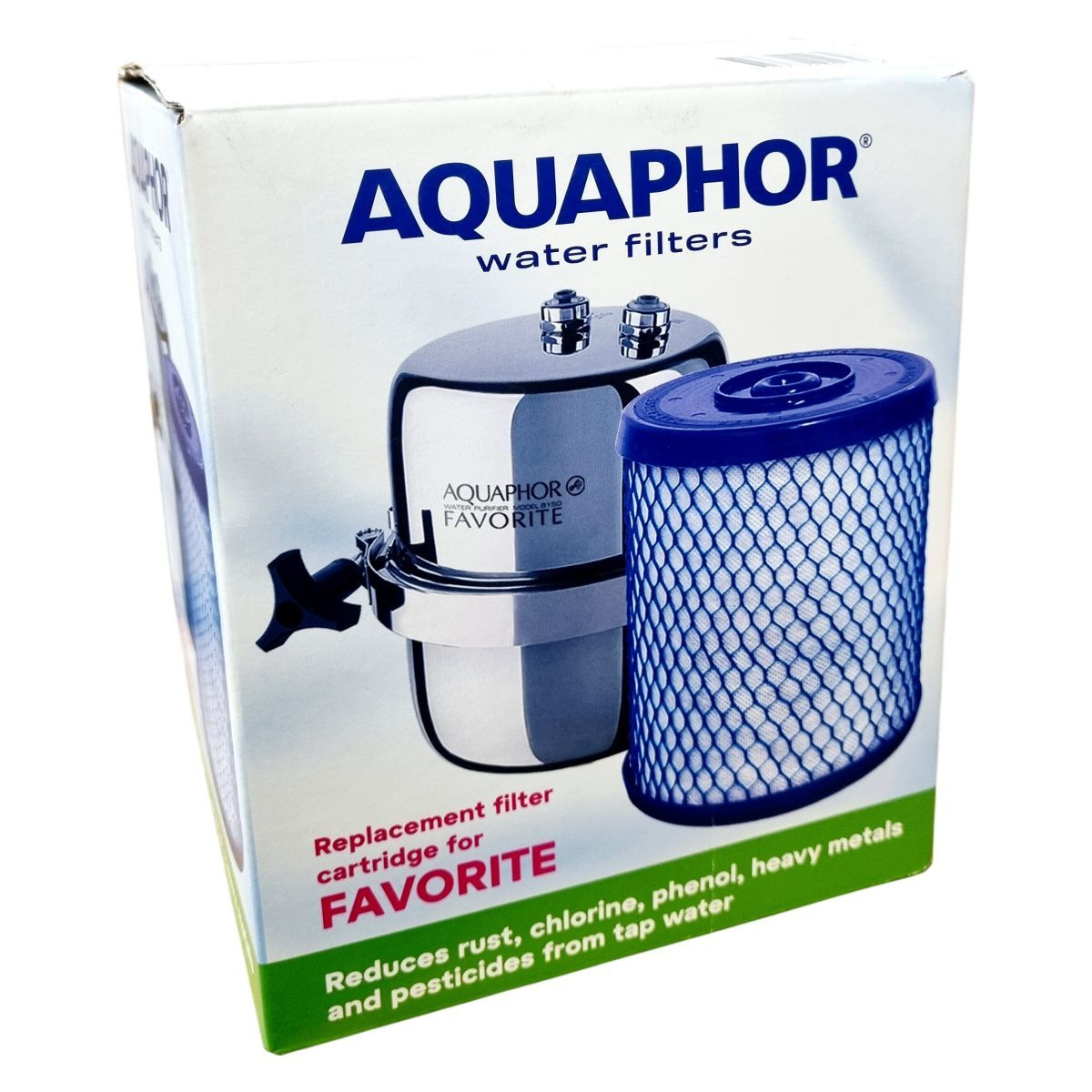 Az AQUAPHOR B150 FAVORITE cserebetét a csapvíz szűrésére tervezett víztisztító rendszer része. Megbízhatóan távolítja el a vizet szennyező rozsdát, klórt, fenolt, nehézfémeket és peszticideket, miközben megőrzi a fontos ásványi összetevőket, így a víz nemcsak tiszta, hanem egészséges is marad. Az eszköz cserélhető szűrőmodulként szolgál, amely egyszerűen beilleszthető az AQUAPHOR víztisztítóba. A terméket az Aquaphor International OÜ gyártja és forgalmazza, amely nemzetközi szintű megbízhatóságot biztosít.