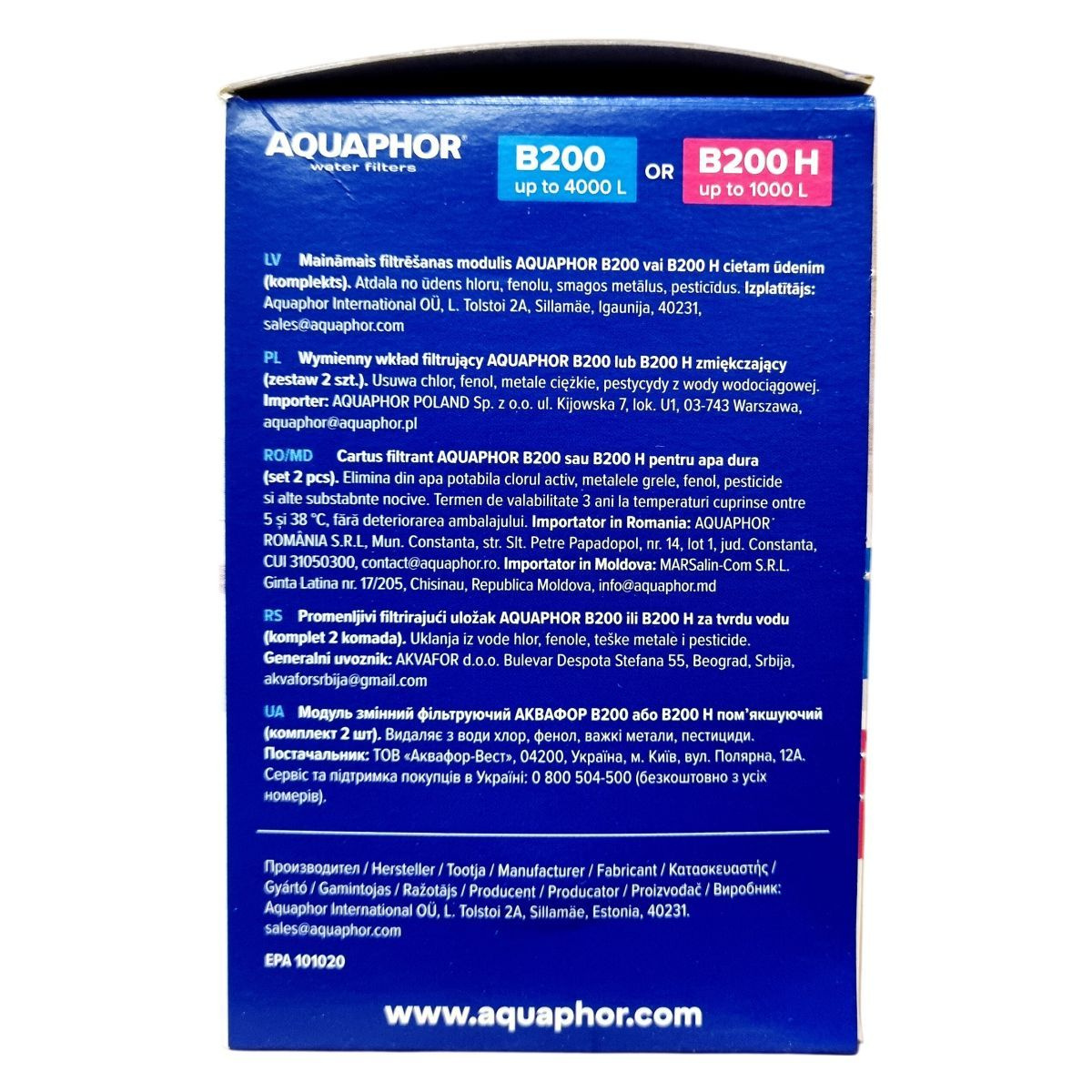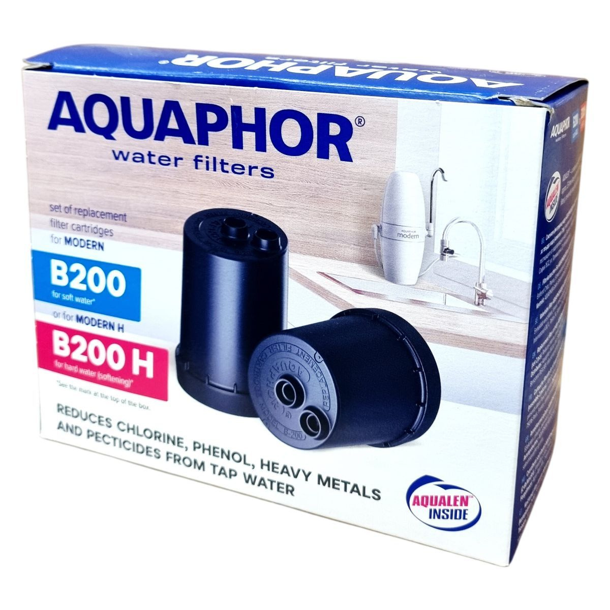 Az AQUAPHOR B200 és B200 H vízszűrő betétek hatékony megoldást kínálnak a csapvíz tisztítására, eltávolítva a szervezet számára káros anyagokat, mint a klór, fenol, nehézfémek és peszticidek. A termék kétféle változatban érhető el: a B200 lágyító nélkül, akár 4000 liter víz kezelésére, valamint a B200 H vízlágyítóval, max. 1000 liter vízhez. Az egyedi AQUALEN™ ioncserélő szál révén a szűrők hatékonyan kötik meg a szennyező anyagokat, így tisztább és jobb ízű vizet biztosítanak. A termék csomagolása környezetbarát, újrahasznosított anyagokból készült, FSC tanúsítvánnyal rendelkezik, figyelembe véve a fenntarthatóságot és környezettudatos gyártást. A készlet 2 darab cserélhető szűrőbetétet tartalmaz, így hosszabb távon biztosítja a tiszta ivóvizet. Használata egyszerű, a megfelelő típus kiválasztása a víz keménységétől függ, amit a dobozon található jelzés segít eldönteni.