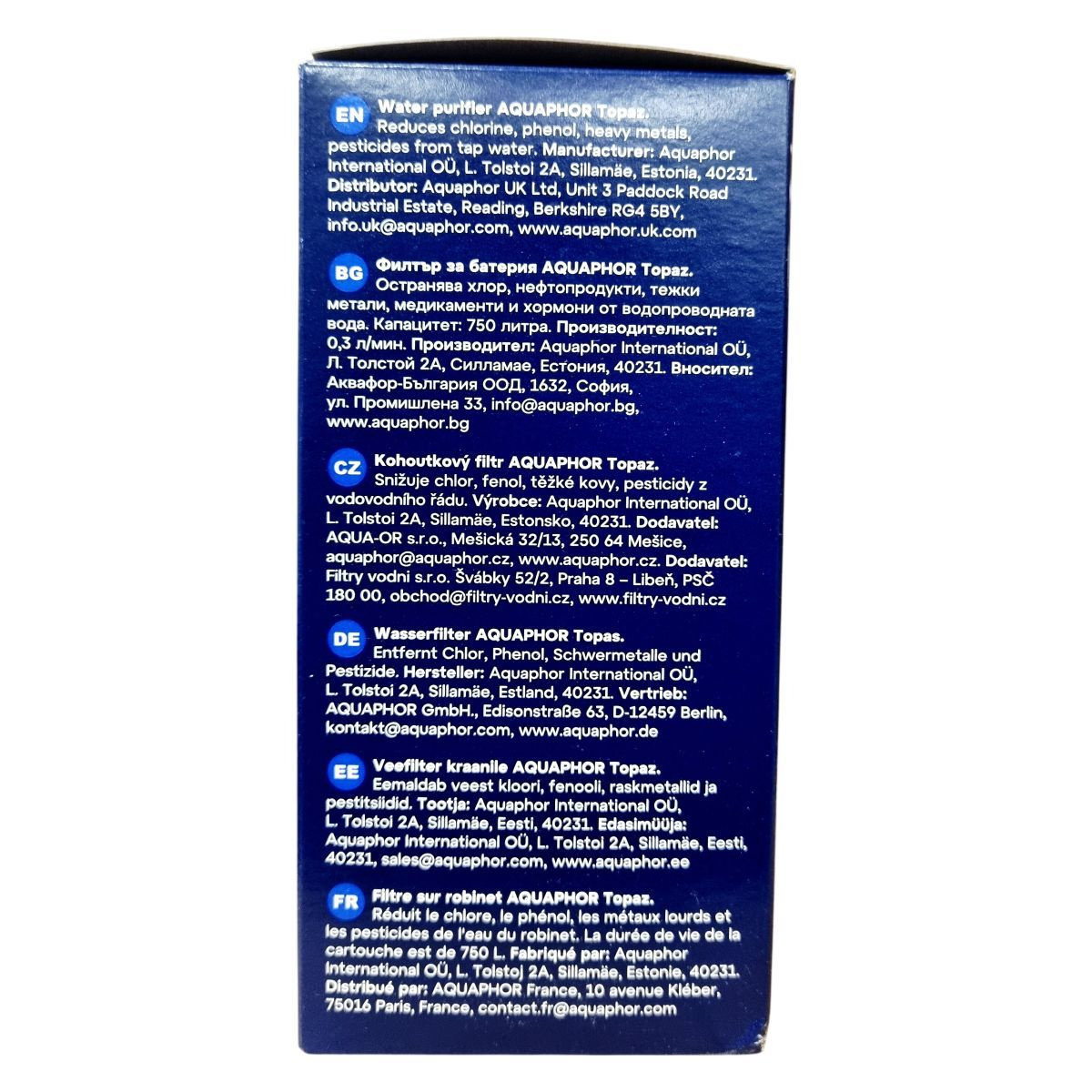 AQUAPHOR TOPAZ vízszűrő segít csökkenteni a klór, nehézfémek, peszticidek és fenol mennyiségét a csapvízben, így jobb ízű ivóvizet és ételeket biztosít pénztakarékos megoldásként.