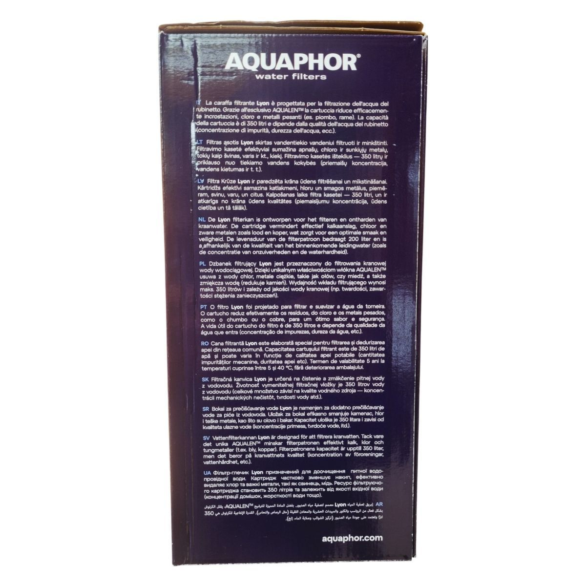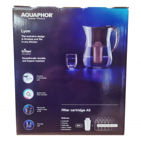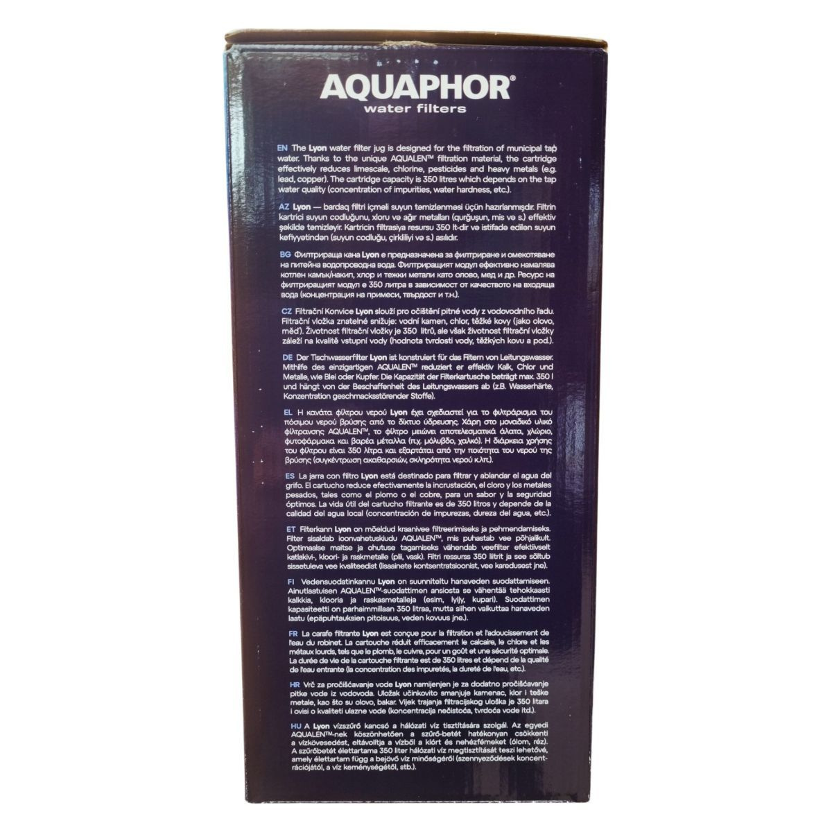 A Lyon vízszűrő kancsó az AQUAPHOR terméke, amelyet a hálózati víz szűrésére és lágyítására terveztek. A kancsó szűrőbetétje az egyedi AQUALEN anyaggal van ellátva, amely hatékonyan csökkenti a vízkövesedést, eltávolítja a klórt, a nehézfémeket, mint az ólom és a réz, valamint a peszticideket és a mikroműanyagokat. A szűrőbetét kapacitása 350 liter, amely a bejövő víz minőségétől függ. A kancsó kiváló minőségű, tartós anyagból készült, és mosogatógépben is tisztítható. A flip-top fedél megkönnyíti a feltöltést, és a kancsó dizájnja bármely konyhába illeszkedik. Az eszköz nem igényel elemet a szűrő állapotának jelzéséhez.